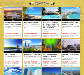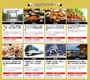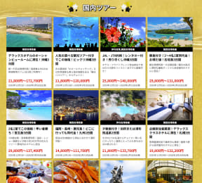国内では、冬に人気の温泉旅行をはじめ、オーシャンビューのリゾートホテルに泊まる沖縄ツアーやカニ食べ放題の日帰りバスツアーなど多彩な商品を販売している。