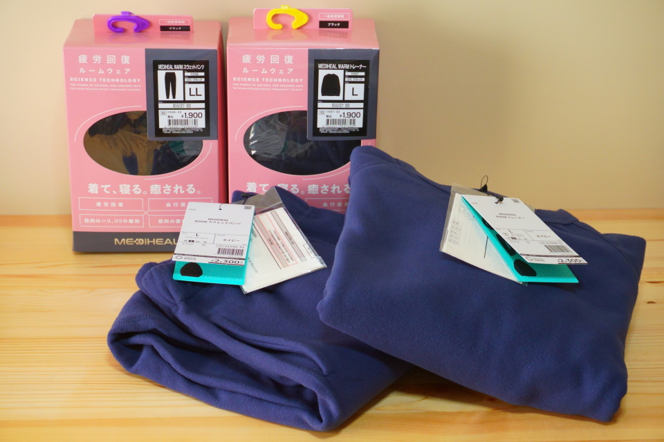 リカバリーウェアは入り口すぐそばの特設コーナーにあり、男女兼用で使えるメンズサイズのルームトレーナー・スウェットパンツと、レディースのウォームトレーナー・スウェットパンツがサイズごとに陳列されていた。