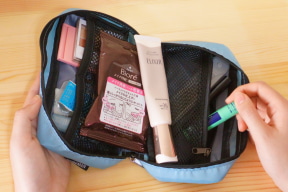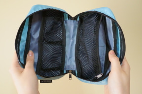 ポケットはそれぞれサイズが若干小さめなものの、ポーチのマチ幅が広いぶん、中央のスペースがゆったりしており、見た目以上にたくさん収納できる。旅行・出張・テレワーク用に小物を収納するポーチが欲しい人や、リビングやデスクの細々としたものを整理したい人にはちょうどいい。