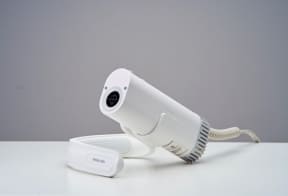 首や肩に掛けられる「フレキシブルホルダー」を採用し、両手を自由に使ってペットの毛を乾かせるのが特徴。ホルダーは形状を自由に変えることができ、スタンドとして卓上に置いたり、取り外してハンディタイプとして使ったりと、シーンに合わせて3WAY(ハンズフリー・スタンド・ハンディ)を使い分けられる。
