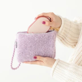 カイロとのコーディネイトを楽しめるよう、肌触りのいいファー生地を使用したピンクとグレーのほか、華やかなラメ入り生地のパープルとシルバーをラインアップしている。価格は各2500円。