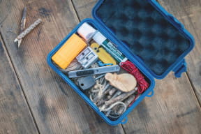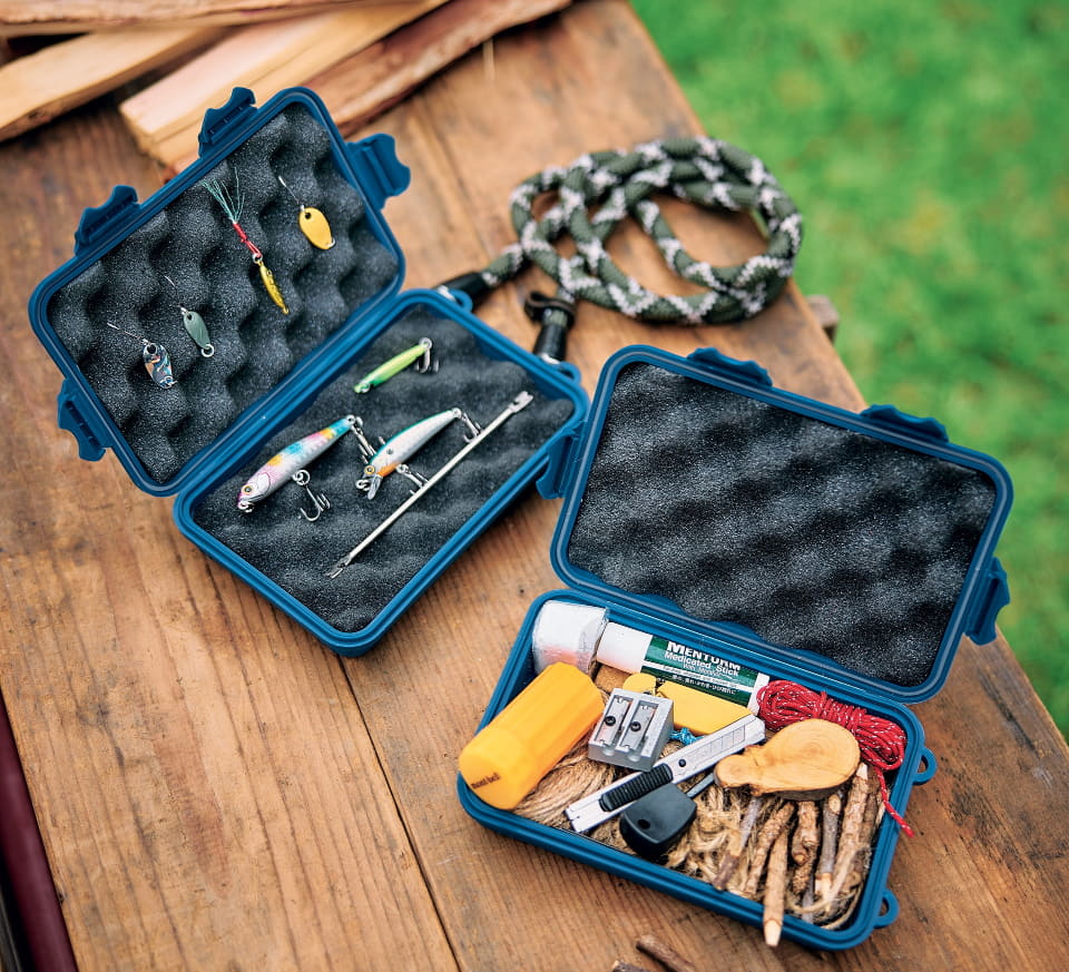大人気アウトドアブランド「mont-bell(モンベル)」とコラボしたクッション入りのギアケース。火おこしセットを入れたり、趣味の釣り道具を入れたりするのにお勧めとしている。