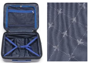 エキスパンダブル機構を採用しており、側面のファスナーを開ければ容量36Lから42Lまで拡張可能。内部の生地は飛行機柄、ベルトはブルーとし、ANAらしさを表現している。