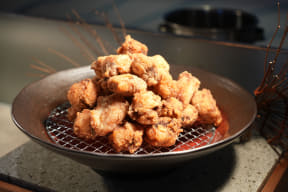 夕食、朝食を提供するビュッフェダイニング「PUKU PUKU」でも、夕食に「ふぐ」を使った料理をたっぷりと用意。ふぐ鍋、ふぐのブイヤベース、ふぐの唐揚げなど、和食だけではなく洋風でもふぐを好きなだけ味わえる。朝食ではふぐ出汁で味わう「瓦そば」も提供する。