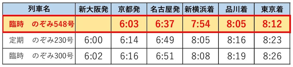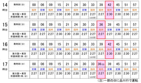 東海道新幹線では東京駅7時台~10時台の下り、新大阪駅14時台~17時台の上りで臨時「のぞみ」を追加設定。定期列車とあわせて1時間あたり最大13本を運行する時間帯を増やす。加えて、東京駅~新大阪駅間2時間30分運転の一部列車は所要時間を3分短縮する。