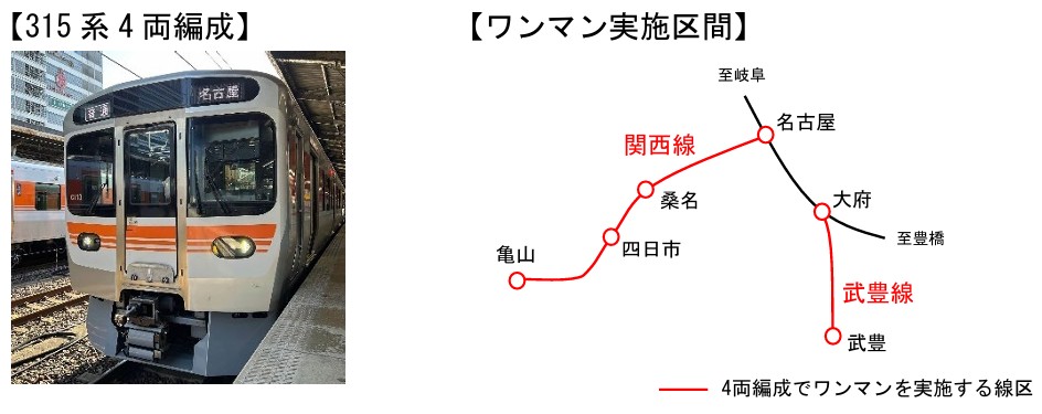 在来線では、315系電車の増備により武豊線・関西線の定期普通列車を4両編成に統一(「みえ」を除く)。4両編成の列車ではワンマン運転を行なうが、すべてのドアから乗降可能とする。