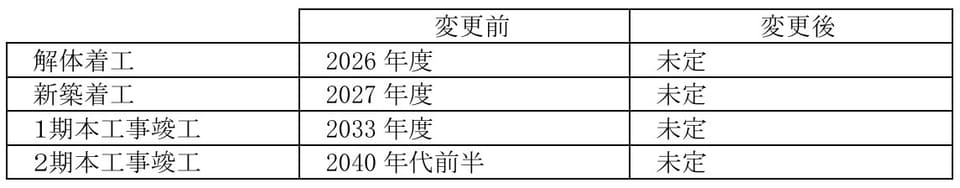 両計画については5月に事業化を公表するとともに、2027年度の新築着工、2033年度の1期本工事竣工、2040年代前半の2期本工事を目指すと明らかにしていた。