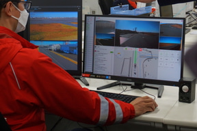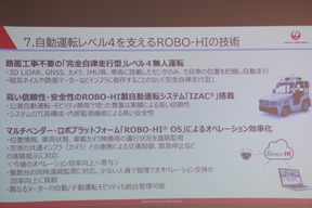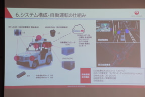 車両は「Guangtai(ガンタイ)」、頭脳は「ROBO-HI(ロボハイ)」を採用した。路面工事が不要、車両に搭載したセンサーのみで自車の位置を把握し、走行できるのが特徴。東西ルートには、運転車両の死角解消を目的に、国土交通省航空局が提供する共通インフラとしてカメラ2台を設置している。