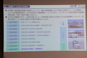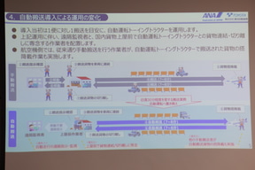 トーイングトラクターは、空港の制限区域内で貨物・手荷物を搭載した台車をけん引する車両。完全無人での自動運転を実現するにあたり、これまでは各社ごとに、ANAではレベル4の試験運用を、JALでは危険回避操作を行なうために運転者が必要な「レベル3」での運用を行なっていた。