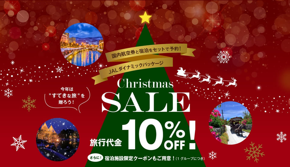 JALの国内航空券+宿泊、1人最大4000円引きクリスマスセール。2026年のほぼ全期間対象