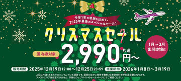 予約期間は12月15日~2026年1月4日で、対象搭乗期間は12月15日~2026年4月29日。