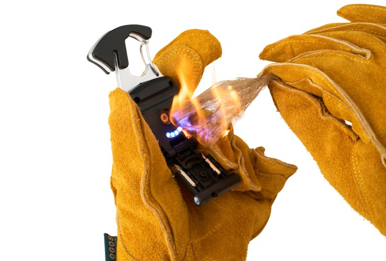 USB蓄電式の多機能サバイバルツールで、ライト、火おこし、ドライバー、カッター、栓抜き、ホイッスルの6つの機能をコンパクトに集約。火おこしは、キャンプやBBQ、蚊取り線香などへの着火に使え、電気の力で火種を生み出す方式を採用しているためガスやオイル切れの心配がなく、風の影響も受けにくいので強風時でも着火できる。