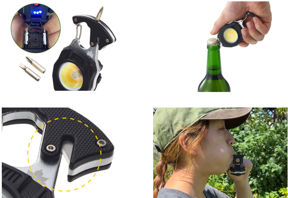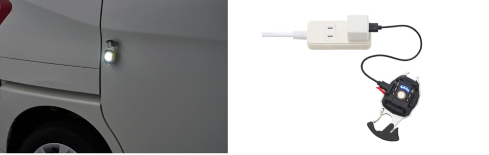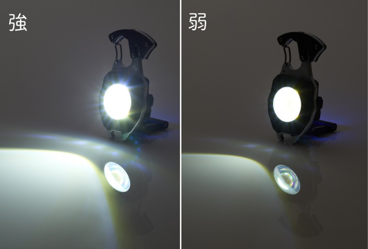 底部にはマグネットを装備しており、車のボディなど金属面に固定すれば、夜間作業や災害時にも両手が自由になるのも特徴。総重量は約70gと軽量で、ポケットや非常用バッグにも収まりやすく、付属のカラビナ付きでベルトやリュックにも簡単に取り付けられる。