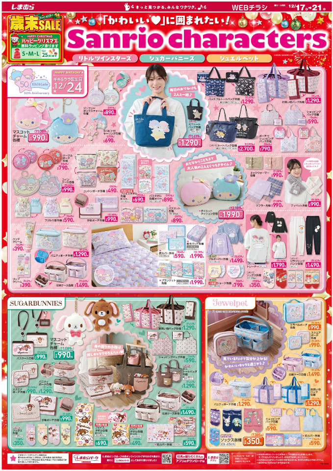 しまむら、今日から「歳末SALE」で数点入り1100円均一。新作「サンリオ」コラボも同時発売