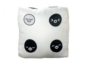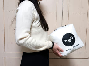 Suicaのペンギンと子ペンギンの顔を1~6の“サイコロの目”にした正方形のクッション。部屋やオフィス、クルマなどのインテリアとして、サイコロとしても楽しめる。サイズは約20×20×20cm。
