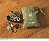 あらかじめセットされている糸色は、スナフキンを彷彿とさせる深い緑の糸。このほか糸切はさみ、糸通し、リフィルの糸(白)に加え、持ち運びに便利な巾着袋が付属する。家庭にある縫い糸も使える仕様なので、用途に合わせて糸色を変えられる。