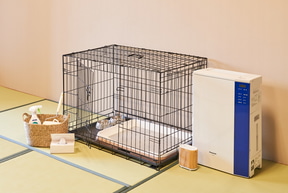 客室は、わんちゃんの足腰に負担がかからないよう畳やカーペットなどを貼り替え、衛生対策のための「空間除菌脱臭機 ジアイーノ」も設置。あると便利なわんちゃん用のエチケットアイテムを各部屋に用意し、露天風呂付客室も選べるとのこと。