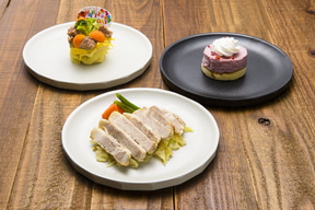 レストランでは、季節限定メニューを含む夕食・朝食ともに種類豊富なバイキングを味わえるという。同伴のわんちゃんは、ハンバーグプレートやポークソテーほか食事系からケーキなどのデザートまで、別注わんちゃんグルメを有料で注文可能。
