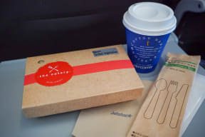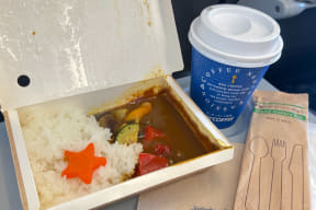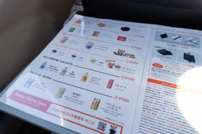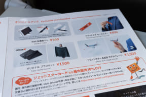 また、機内食は別途有料で事前予約制となる。今回の成田発高雄行きは約4時間半の短距離国際線ということもあり、機内食はとらずにお菓子やドリンクを持参している人が多く見受けられた。なお、機内でもお菓子やカップヌードル、ドリンク(アルコール含む)、グッズなどを販売している。