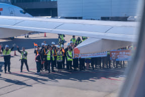 この日、日本側の初便となる朝9時25分発のGK17便を対象に、成田空港 第3ターミナル 152番搭乗ゲート前で就航記念イベントを実施。ジェットスター・ジャパン 取締役会長 阿部孝博氏らが挨拶したほか、家族連れやシニアなどで満席となった搭乗客全員に記念品をプレゼント。駐機場では、社員や空港スタッフらが横断幕を掲げて初便の旅立ちを見送った。