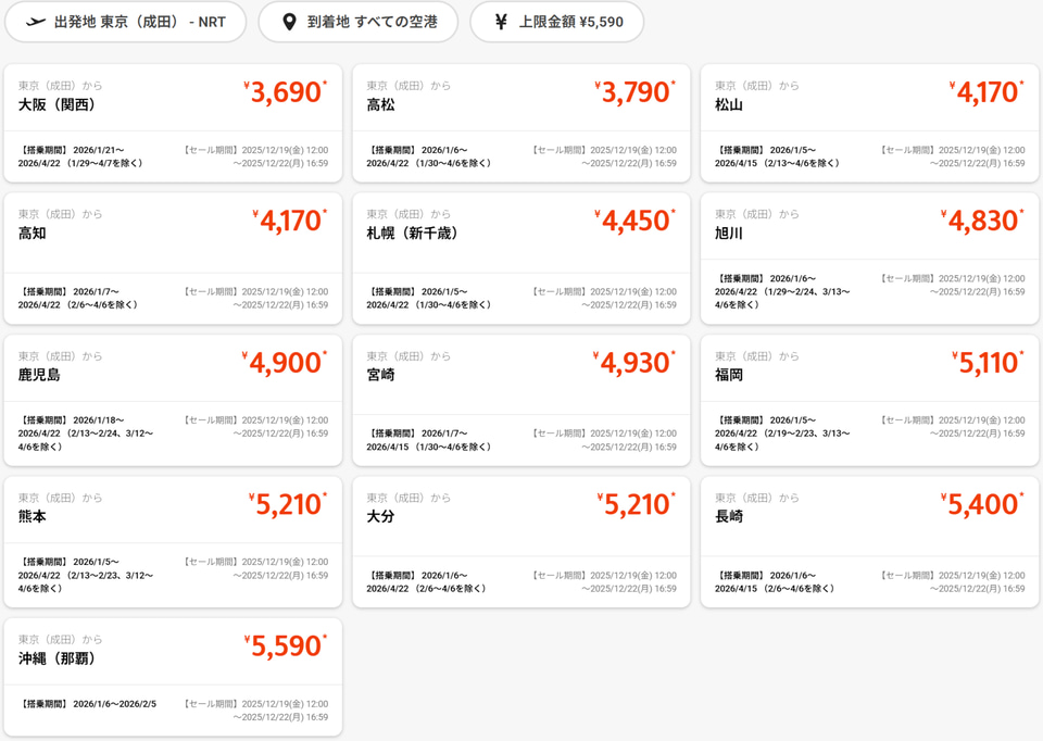 ジェットスター、国内18路線が片道3690円~「スーパースターセール」。12月19日昼から