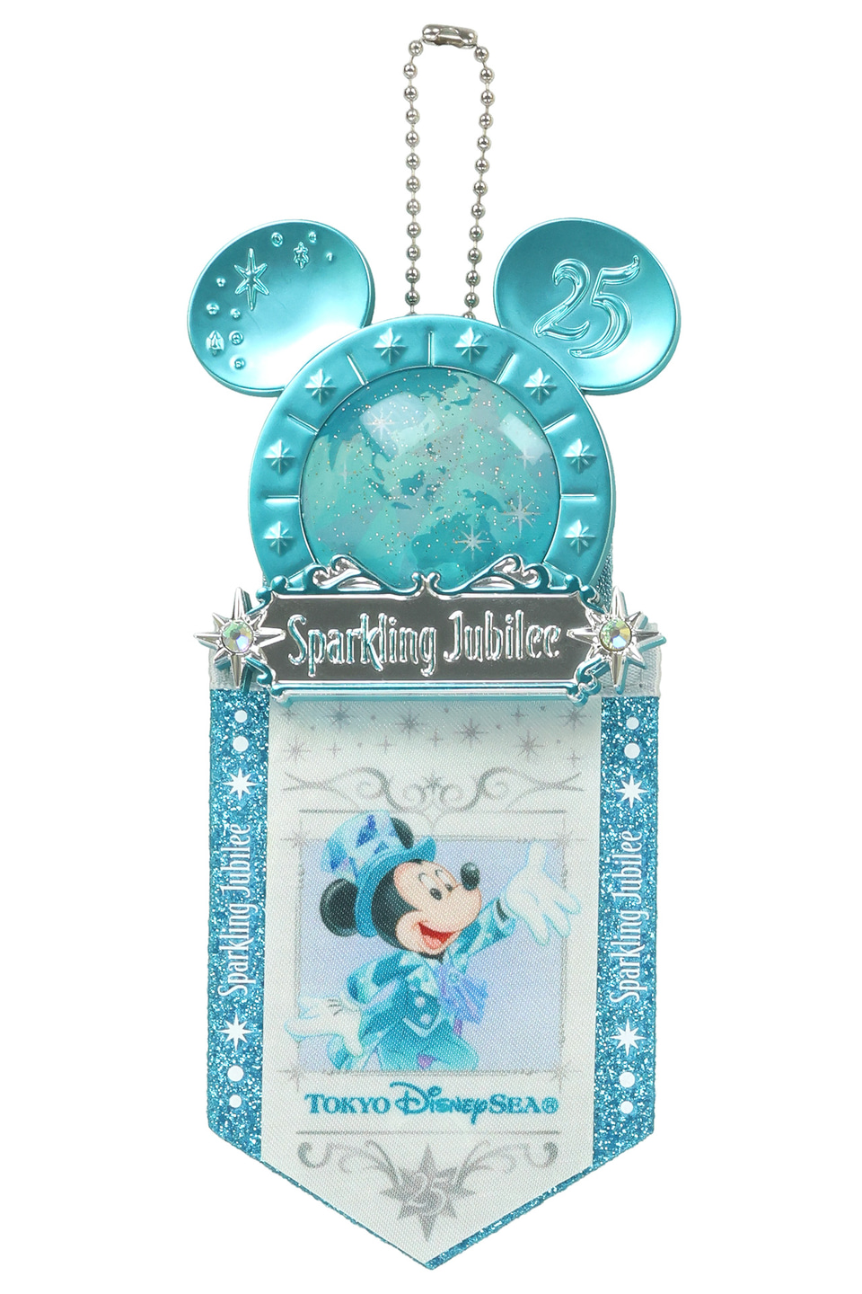 また、「ストラップ」(600円)もリボンタイプとチェーンタイプの2つを用意する。胸元やバッグなどにつけて、25周年をお祝いしながらパーク滞在を満喫できる。販売は「エンポーリオ」で。