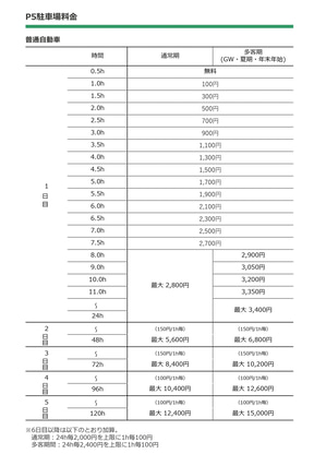 特にゴールデンウィーク・夏休み・年末年始の繁忙期は「多客期」として最大料金が異なり、1日3400円(24時間ごと)が発生する。