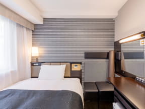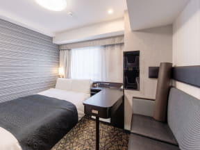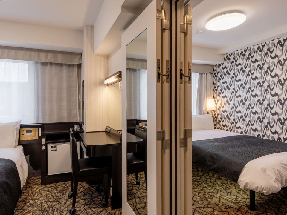 館内設備としては、利用客自身が足のサイズに合わせて調整できる「アジャストスリッパ」や、マイボトル利用を見据えた「ウォーターサーバー」を初導入。 客室は同社の新都市型ホテルの最新仕様で、50型超の液晶テレビ、Wi-Fi 6、枕元集中コントローラーなどを備える。インバウンド需要に対応し、館内案内やテレビ画面の多言語対応(5言語)、ユニバーサルコンセントの設置なども行なっている。