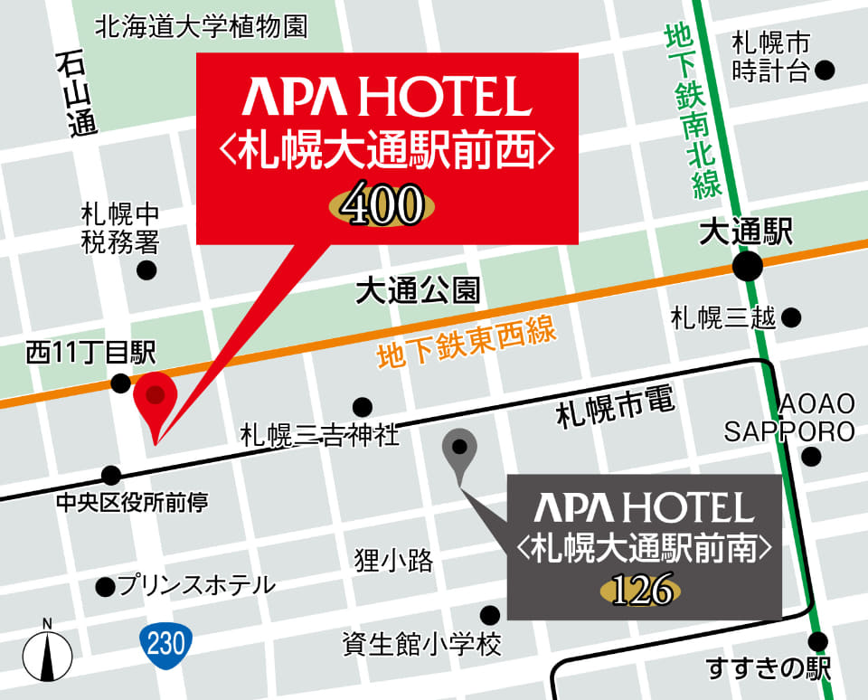アクセス: 東西線・南北線・東豊線「大通駅」(1番出口)徒歩7分、東西線「西11丁目駅」(3番出口)徒歩4分