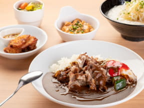1階レストランには、札幌市民のソウルフード「ザンギ」で知られる地元の有名店「中国料理布袋」が出店。朝食では布袋のザンギや麻婆豆腐などを盛り合わせたプレートセットを提供するほか、アパ社長カレーとのコラボメニューも用意している。