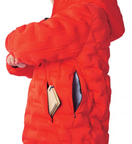 特徴: 従来製品の2倍の中綿を使用し、ふんわり包み込まれるような着心地のダウンフーディ。洗濯機で洗えるウォッシャブル仕様で、吸湿発熱、軽量、ストレッチ、高撥水、2重袖口の機能も備える。