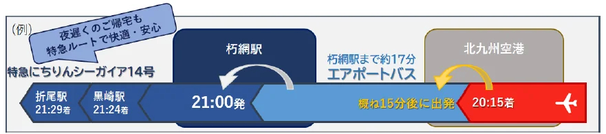 また、西鉄バス北九州のエアポートバスとの乗り継ぎ時間を改善し、一体的に利用できるようにする。バスの時刻は2月に発表予定。