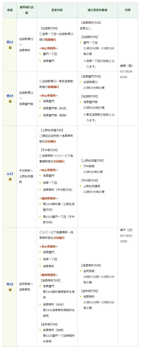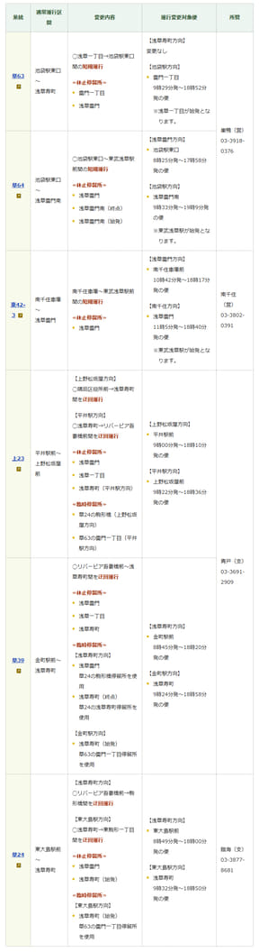規制中、都営バスの「浅草雷門」「浅草雷門南」「浅草一丁目」「浅草寿町」、京成バス東京の「リバーピア吾妻橋」「浅草雷門」の各バス停は休止となる(一部始発・終着路線を除く)。該当路線は浅草通りに迂回するか、付近のバス停までの短縮運行となる。