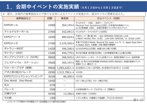 そのほか、会期中イベントの実績も公開。ドローンショーを含む「One World、One Planet.」は、ドローン演出ありが127回、なしが57回と、およそ3回に1回はドローン演出なしでの開催となっている。