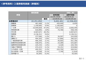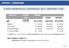 旅行会社による数値なども含めた入場券販売実績(確定版)も公開。総数は約2225万枚と目標の2300万枚には届かず、未使用のチケットも約195万枚(8.8%)あったとみられる。