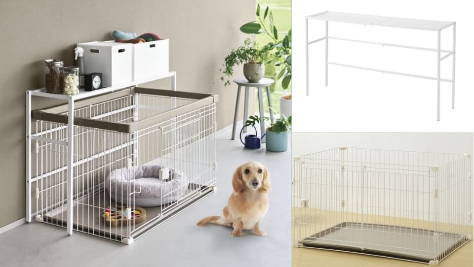 ニトリ、伸縮ラックでペットケージ上のデッドスペースを有効活用する「ケージ周り収納シリーズ」