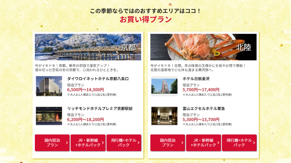 日本旅行の初売りセール。京都初詣/北陸カニ旅もお得に! 早い者勝ち国内プラン&7000円引きクーポン