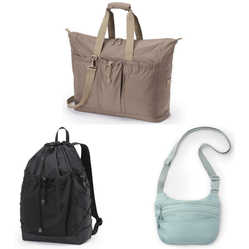無印良品、軽くて丈夫なリップストップ生地の撥水加工バッグ4種。ボストン、リュック、ショルダー