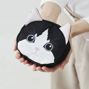 内容: 収納一体型のエコバッグ。バッグをたたんで猫顔モチーフのポケットに収納すると、手のひらサイズにまとまる。ふにっとした触り心地の耳や肉球のイラストもポイント。