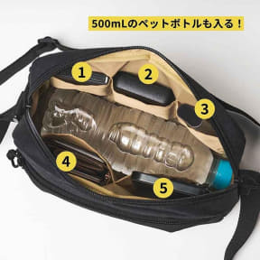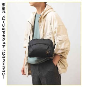 サイズは約23.5×6.5×17cm(幅×奥行×高さ)で、500mLのペットボトルも入る大きさ。ショルダーストラップの長さは123cm。型崩れしにくいのでカジュアルになりすぎないのも特徴という。