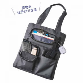 人気セレクトショップ「アーバンリサーチ ドアーズ」とコラボした付録のお財布機能付きトートバッグは、バッグ正面に3つの外ポケット(縦長×1、横長1)とウェビングテープを搭載したユニークなデザインが特徴。