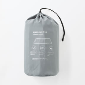 空気を入れて使う、省スペースで軽量なマットレス。内蔵のポンプを足で踏むだけで膨らませられるので、空気入れの道具を別で用意する必要もなく、使わないときは空気を抜いて専用の収納袋に入れることでコンパクトに持ち運べる。災害などの非常時にもこれ1つで使えるよう、付属品不要の仕様としている。