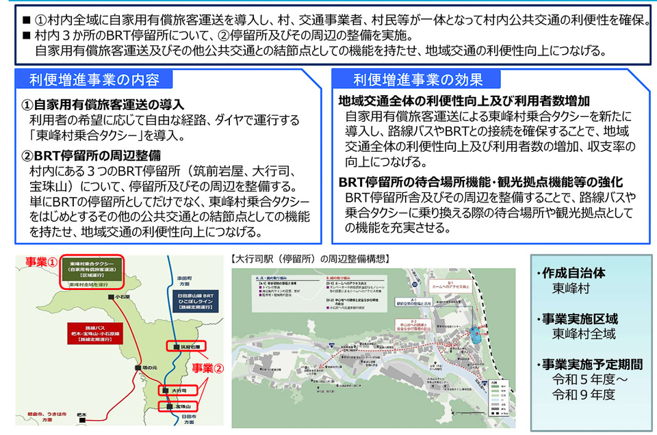 鉄道の名残を残すがゆえに、バス専用道にある駅は不便だ。だからこそ東峰村は、村内3駅の改修に予算を投じつつ、利便性を上げる「東峰村地域公共交通利便増進実施計画」に取り組んでいる。