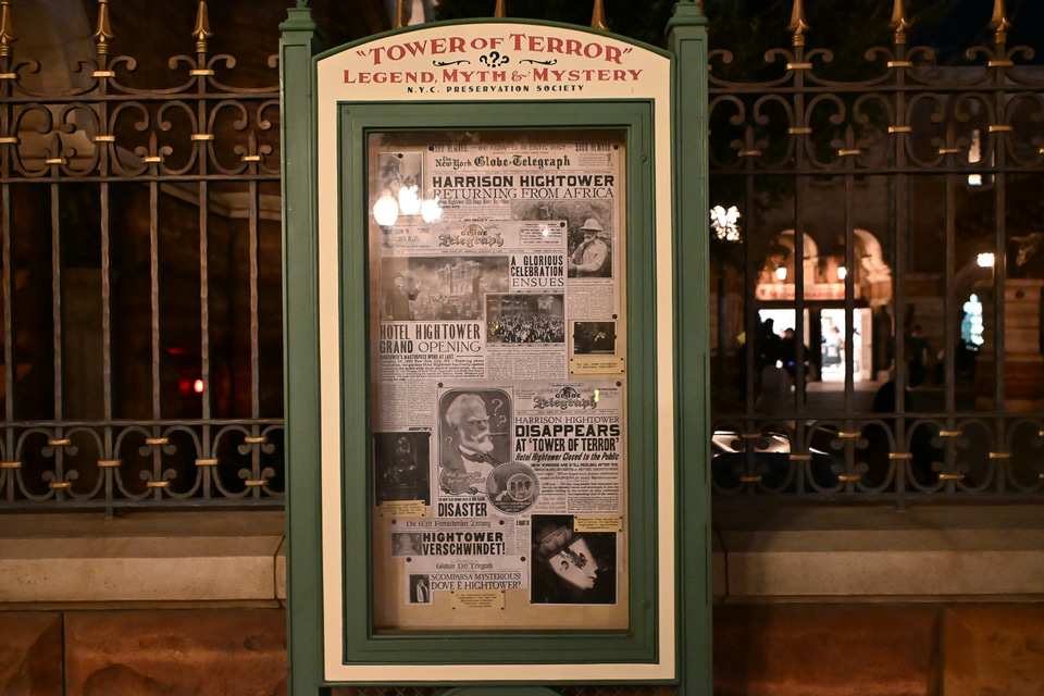 本アトラクションは、奇怪な現象が発生したことにより閉鎖されている「タワー・オブ・テラー(恐怖のホテル)」が舞台。大富豪であり探検家であったハイタワー三世が建造し、その謎の失踪事件をきっかけにクローズした過去を持つ。