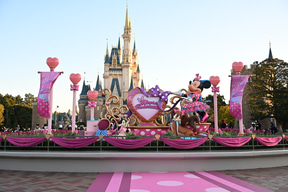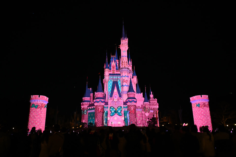 具体的には「ベリー・ベリー・ミニー!」「ミニー・べスティーズ・バッシュ!」など。レッド&ブラック、ホワイトのドットでデコレーションされたシンデレラ城や、ハートがあふれる様子。さらに今回のブルーとピンクのクール&キュートなカラーリングなど、装いを変えたお城の美しさにうっとり。