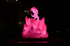 ファンダーナイトは、ミニーのファンダーランドの世界観を日の暮れたあとも楽しめるライトアップ。昼だけでなく夜もミニーマウスが夢に描いた世界を楽しむことができるのだ。