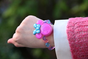 もちろん夜間演出時にも身につけグッズが大活躍! キラキラとミニーのモチーフ部分輝く「光るおもちゃ」(1900円)で、夜のパークがより一層楽しくなるはず。なお、昼間もビーズブレスレットとして付けられる2way仕様だ。