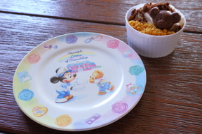 ミルクプリンには、ミッキーにダッフィー&フレンズがあふれる思いを伝えている瞬間をデザインしたスーベニアカップ(+850円)を、アップルクランブルケーキには、航海から帰ってきたミッキーとダッフィーの再会の様子を描いたスーベニアプレート(+850円)を付けることができる。