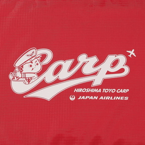 衣類や応援グッズをコンパクトにまとめられる衣類収納バッグ。真っ赤なカラーリングとパイロット姿の「カープ坊や」で、「カープ愛」とともに遠征や旅行に行けるデザインとなっている。