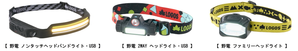 アウトドアブランド「LOGOS」を展開するロゴスコーポレーションは、「野電 ノンタッチヘッドバンドライト・USB」「野電 2WAY ヘッドライト・USB」「野電 ファミリーヘッドライト」を発売した。ロゴスショップ(アウトレット店を除く)と全国の量販店で取り扱う。